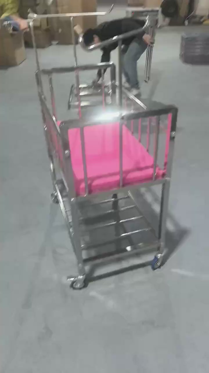 High - Quality Stainless Steel Pediatric Hospital Bed Trolley with IV Pole & Storage Shelf