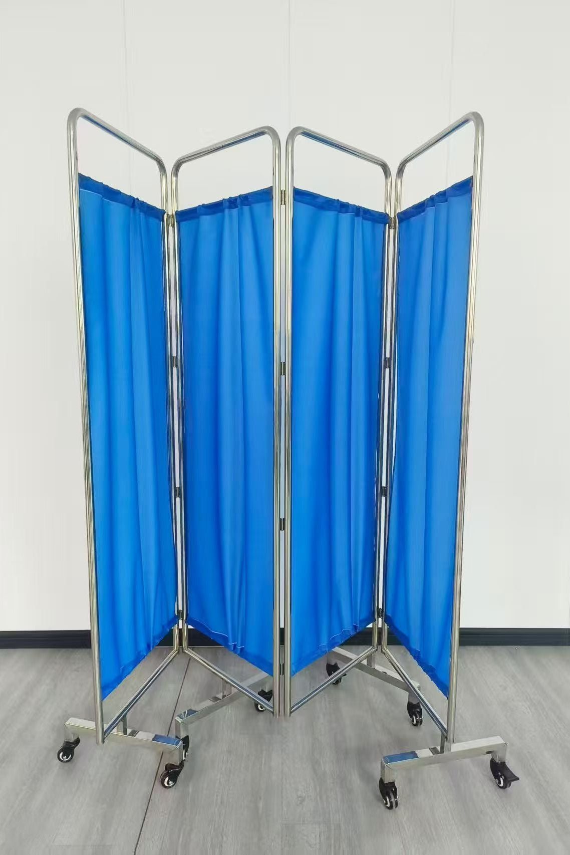 Stainless Steel Bulk Four-Panel Folding Screen with Four Square Feet This durable stainless steel folding screen combines professional-grade construction with practical versatility. Featuring four panels that fold compactly for easy transport and storage, it provides 4 square feet of coverage ideal for medical facilities, clinics, and healthcare settings. The stainless steel construction ensures superior corrosion resistance and longevity, while the sturdy frame maintains stability during use. Perfect for patient privacy, examination areas, or procedural separation, this screen delivers reliable performance in demanding medical environments. Its lightweight yet robust design makes repositioning effortless, while the seamless finish simplifies cleaning and maintenance protocols.