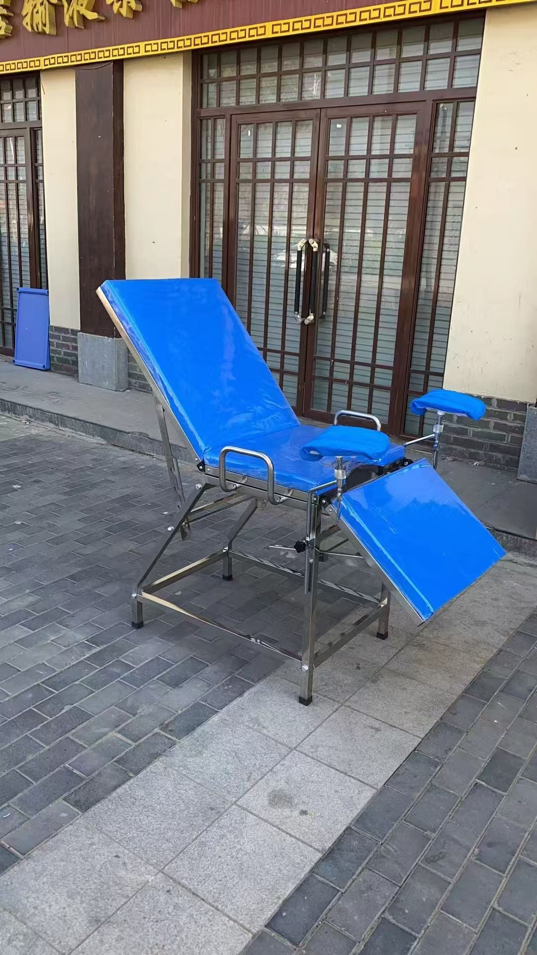 Designed for obstetric and gynecological procedures, this three-fold examination bed features a durable stainless steel construction that ensures longevity and easy sterilization. The adjustable sections accommodate various patient positions while the sturdy frame provides reliable support and stability. Engineered for medical facilities requiring dependable equipment, this bed combines functionality with professional-grade durability for comprehensive patient care.